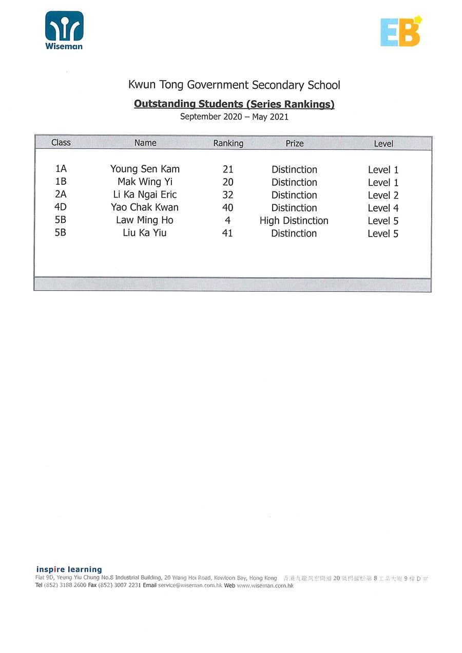 Outstanding Students (Series Rankings)