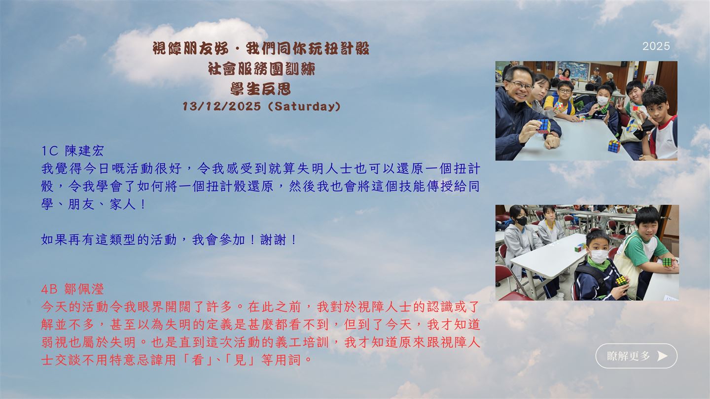 視障朋友好_我們同你玩扭計骰_社會服務團訓練_學生反思